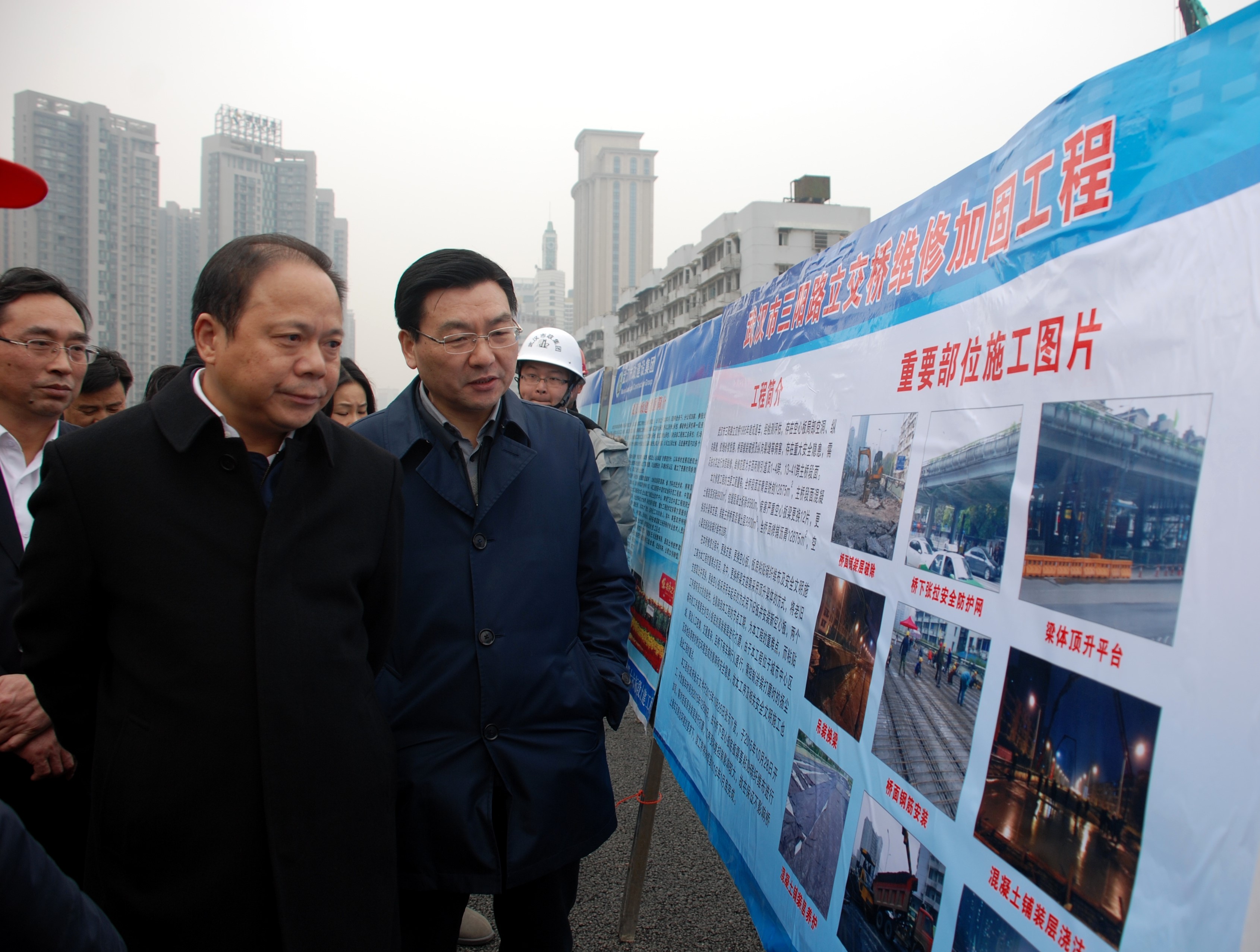 1214,市长万勇一行在航发集团董事长、党委书记谢先启,航发集团总经理、董事、党委副书记黄兆义,航发集团总经理助理、AG九游会集团副总经理刘志勇等陪同下视察桥梁公司承建的三阳路立交桥维修加固工程。谢总向万市长详细介绍了工程建设情况及建设者克难攻坚、昼夜奋战保工期的感人事迹,万市长对工程施工进展给予了充分肯定,要求该工程抓紧收尾事情,在包管宁静的前提下加速施工进度,争取在1224日通车,确保圣诞节市民流通出行。